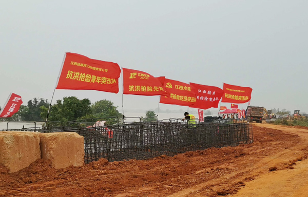 7月12日晚,九江市永修縣三角聯(lián)圩發(fā)生潰堤,決口長(zhǎng)度100多米,洪水淹沒(méi)了圩堤內(nèi)紅旗村、永豐墾殖場(chǎng)等部分地區(qū)。公司在接到省防指和水利廳下達(dá)的防汛任務(wù)后,積極響應(yīng),緊急抽調(diào)并組建了一支90余人的專業(yè)隊(duì)伍,并迅速落實(shí)機(jī)械設(shè)備。由公司黨委書(shū)記、董事長(zhǎng)王元旦親自帶隊(duì),星夜馳援一線。